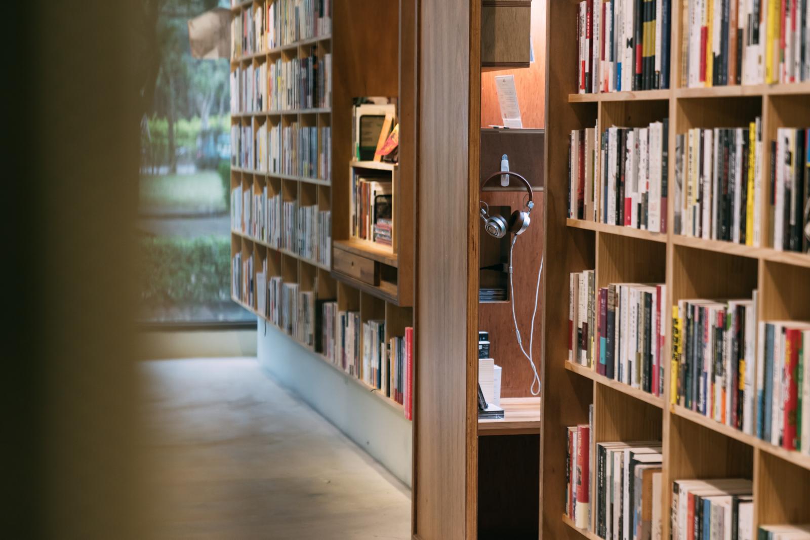 點一杯熱咖啡,聽著音樂流瀉在空間之中,坐在書店邊隅的一角閱讀著自己喜歡的書,快樂地任憑時間流逝。