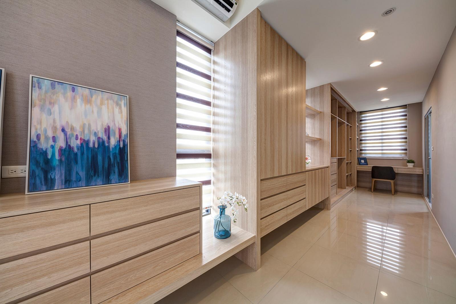 三樓為整層主臥室,主臥配四件式衛浴設備,包括TOTO牌衛浴、Panasonic暖風機等;四樓規劃兩間臥室、一間衛浴;五樓打造多功能室,可規劃遊戲室、書房、神明廳等,另設計頂樓露台空間,可作為植栽及戶外休憩的放鬆空間。