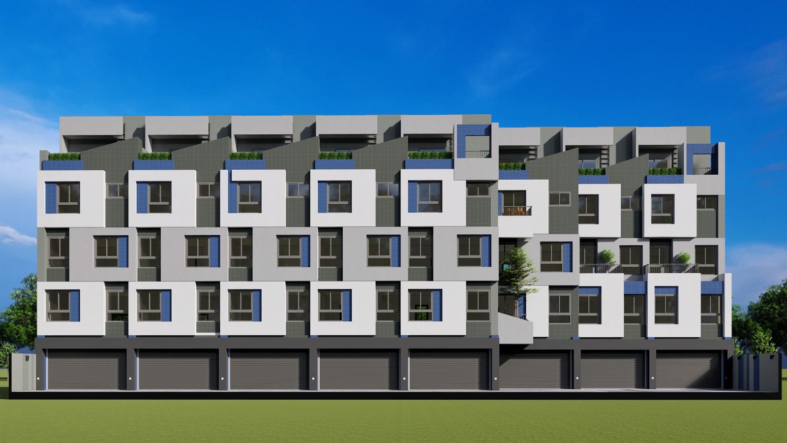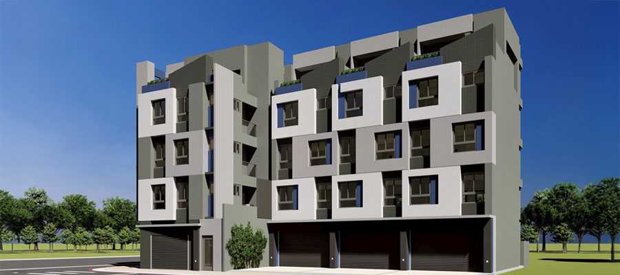「凱歌莊園」規劃地坪23~30坪、建坪59~80坪,總戶數25戶,無公設比。建築外觀採用深灰、白色與淺灰三色搭配的外牆配色,強調立體幾何感,窗框造型與牆面分割呈現俐落現代風格;部分樓層陽台、窗台採錯層設計,不僅提升視覺變化,,也讓每戶享有更好的採光與通風品質。