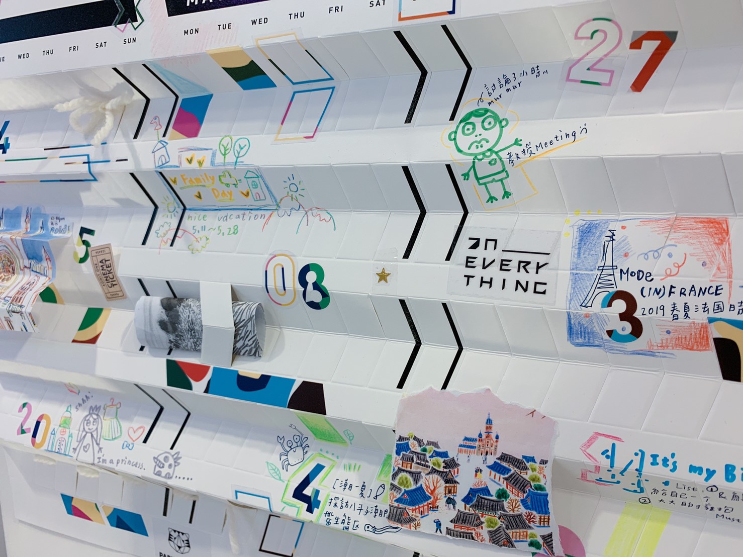 除了被填滿的色彩,Papier Tigre解讀科技帶來的紙張沒落並不是絕對,因為那些被取代的紙張通常是發票、工作書信…但人與人表達情感的文字溫度依然存在,是透過筆觸力道顯現在紙張上,所以紙張文具之於人類是另一種進化而非消逝。以此概念,在藝廊一進去有一道白牆,上面可自由塗鴉,其目的在於喚醒現代人的手寫溫度,是可以繼續恆溫、不被取代的。