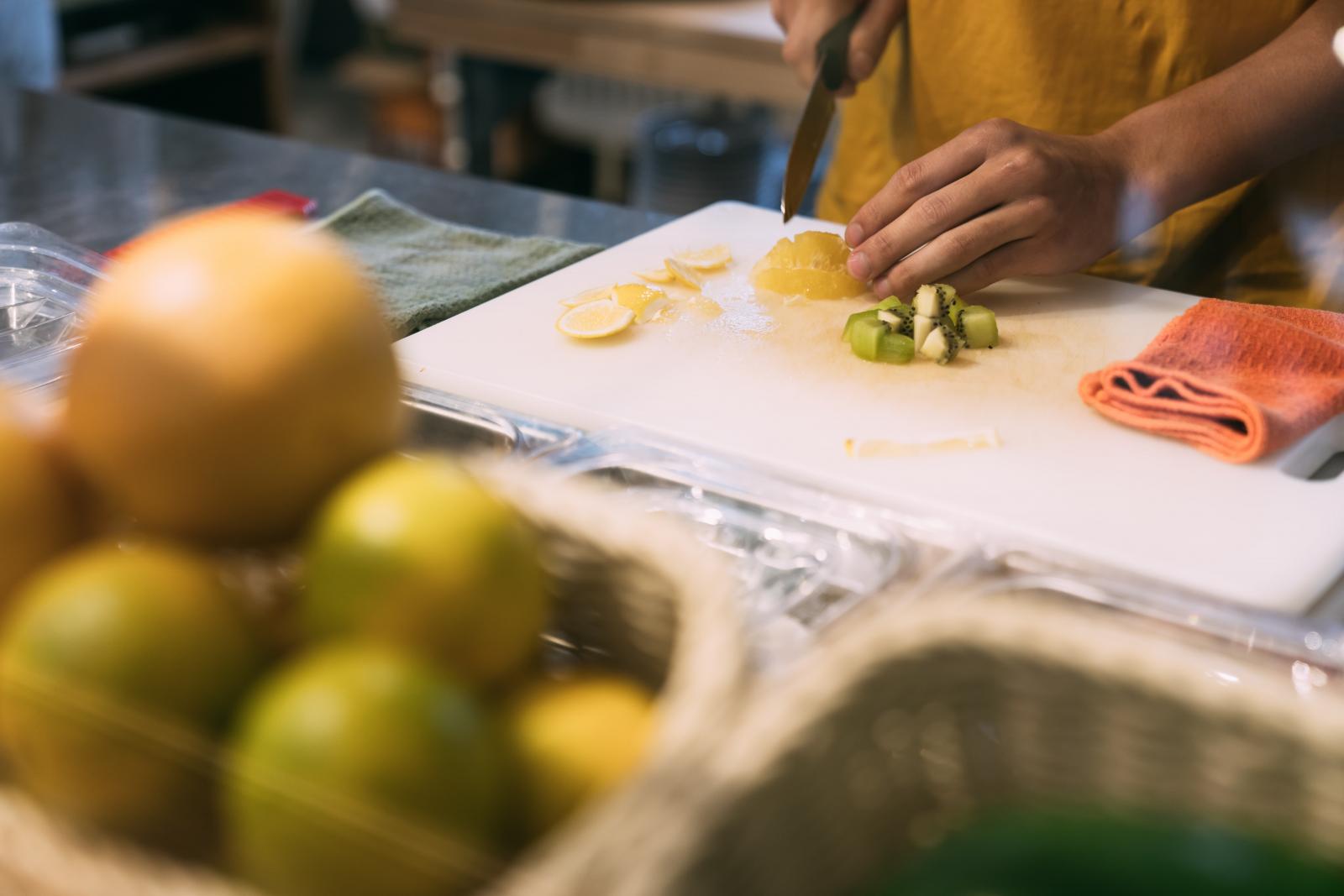 在「或者」二樓餐飲區,前後方設計大面開窗引入自然光線,將戶外綠意盡收眼底;餐飲規劃上,以友善土地、重視生命、健康安全的飲食概念出發,結合在地小農推出蔬食餐飲,跳脫傳統蔬食料理方式,以自然烹調方式,用橄欖油入菜,所有醬料都是自家製成,無使用食品添加物,雖然是輕食蔬果料理,但做法耗工費時,希望能讓消費者吃到食物的美味,健康無負擔。