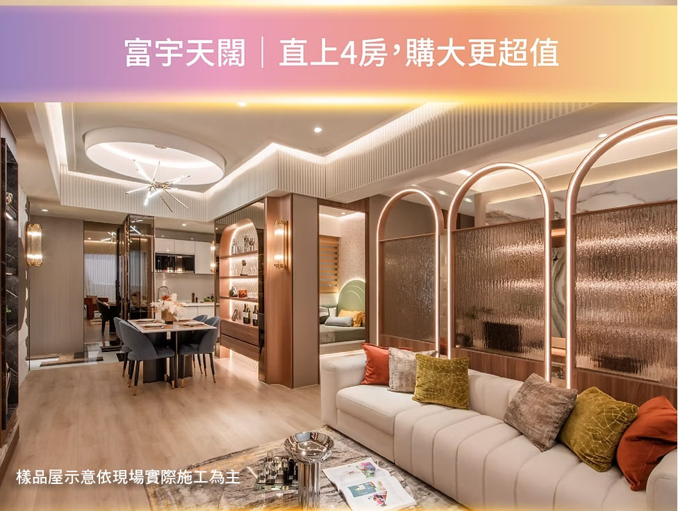 限期活動!「富宇天闊」交屋即送風格精裝修,達到預售交屋裝修⼀次滿足!精裝修屋不僅省下裝潢費用更可以節省裝潢時間,提升生活便利性。