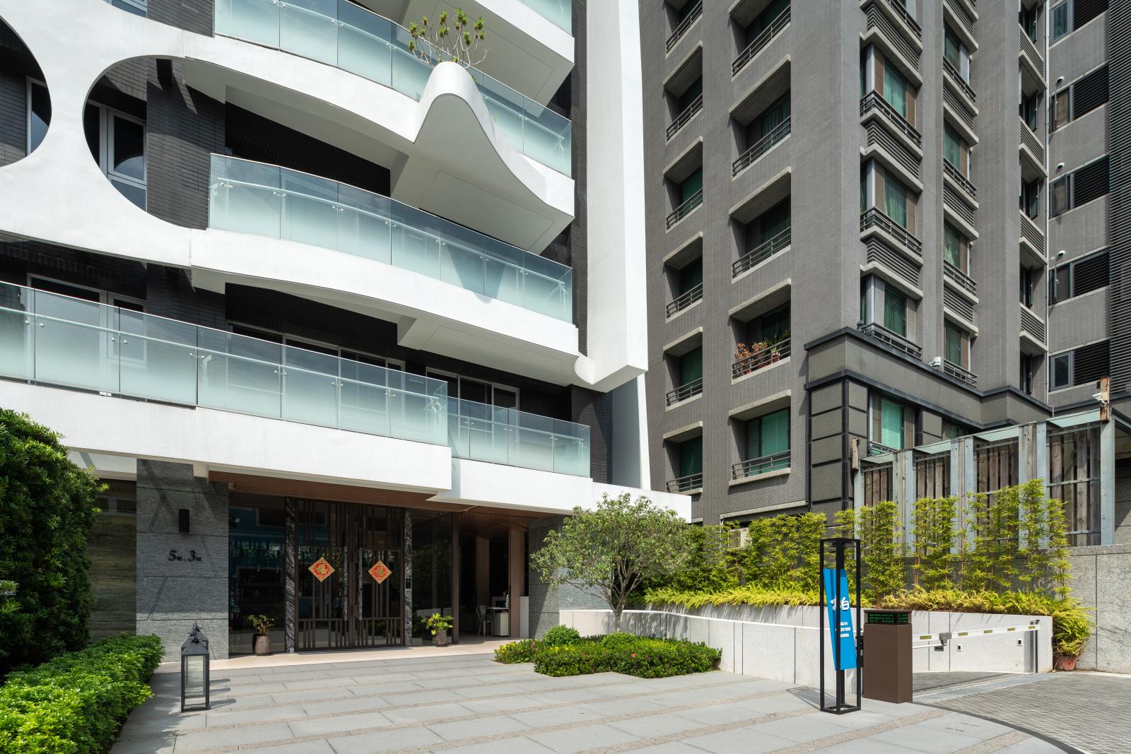 建築立面採用石材、金屬與玻璃等建材,讓光線柔和地穿透建築的多孔表皮,層疊大尺度的景觀陽台,豐富建築物的立面表情,讓人、空間與自然綠意緊密結合,形塑一種沈穩的氣質與調性。「寶鴻大白」位居市中心靜巷,隱於繁華核心,同時享有靜謐居住環境,在繁忙緊湊的都市步調中尋覓一方清淨,彷彿在日本東京表參道靜巷名人居,營造舒適特有的漫活情調。