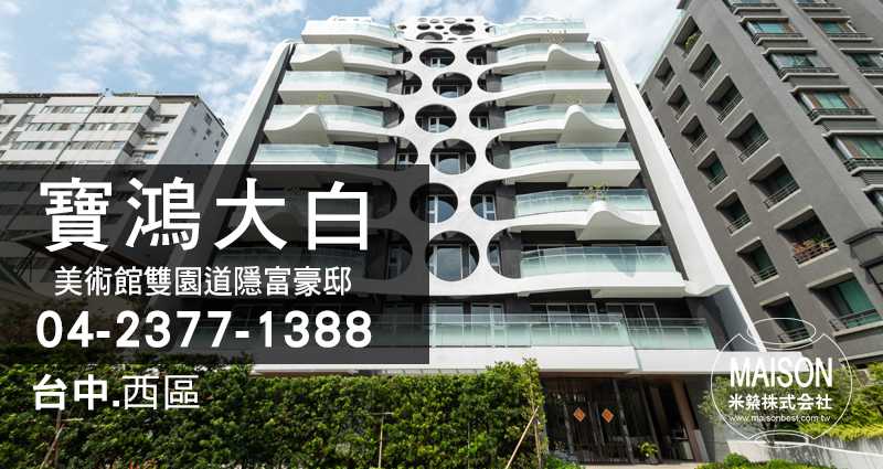 寶鴻建設於美術館綠園道特區打造隱富豪邸「寶鴻大白」,從規劃到完工歷時多年時間完成,為打造綠園道旁經典的地標,特別聘請知名建築團隊操刀,立面外觀由十大建築大師王銘鴻親自設計,強調與自然共生、將地景融入理念,以有機的表皮作為設計主軸,從樹葉的組織作發想,多孔性的表皮呈現建築特殊樣貌,打造一座通氣與綠化結合的住宅。