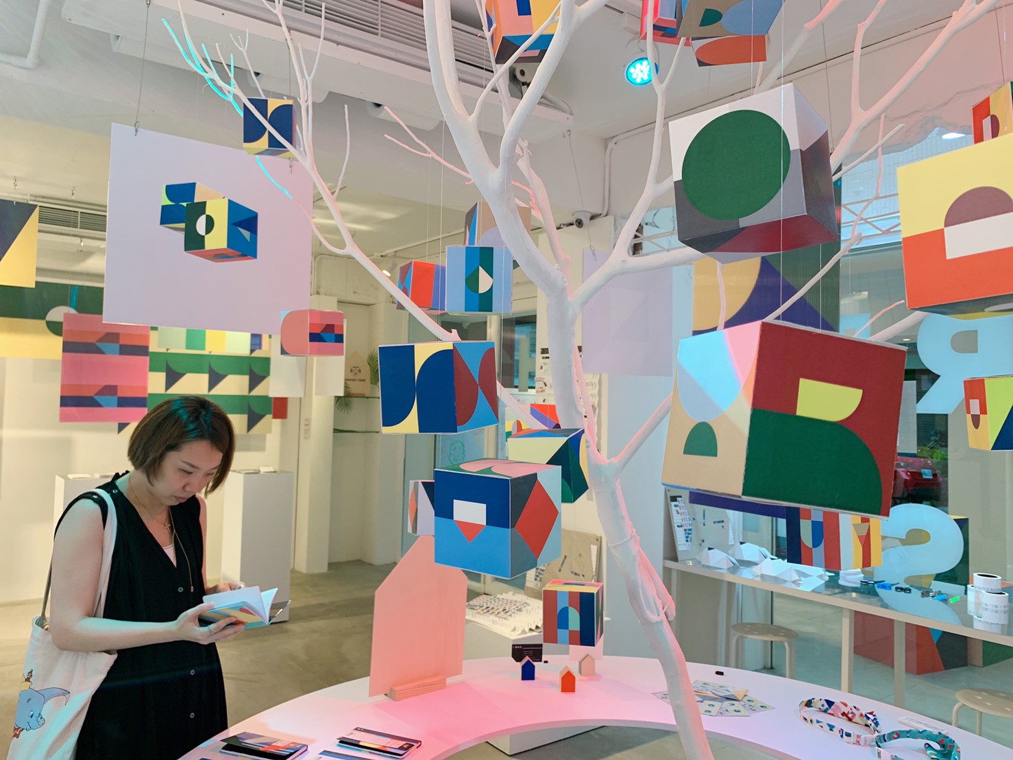 這次來台的展覽概念以幾何結構為主題,搭配璀燦濃郁的色彩,在純白的空間下吊掛各式彩色方塊、切片,上面利用不同形狀的色塊做佈置,顏色大膽但舒服不刺眼。因為顏色的彩度、亮度都是穠纖合度,整體空間感在趣味與藝術之間達到完美平衡,是屬於你我都能體會的藝術設計。