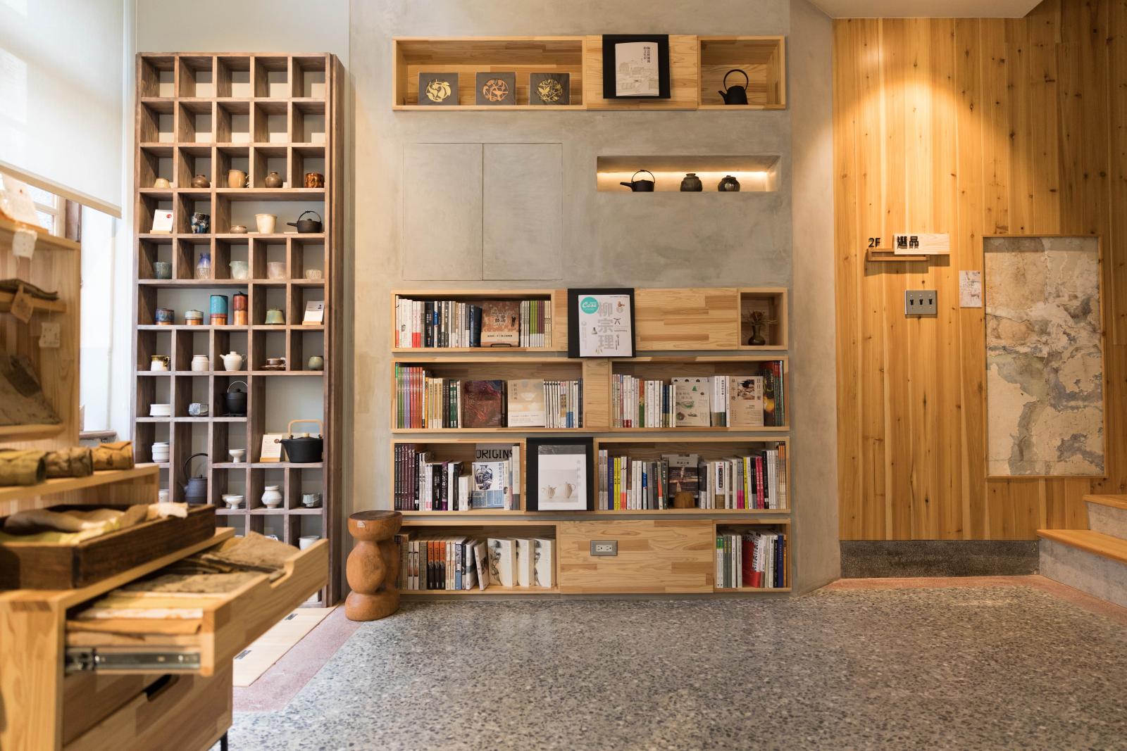 在「或者工藝櫥窗」四樓則是食飲空間,是提供民眾以工藝品來品嚐咖啡、茶飲的歇心之地,仔細一瞧,保留了老屋的磨石子地板,加上原有的挑高設計、窗格、鐵花窗,充滿木香的環境,彷若回到老時代的懷舊時光,菜單內都是精選的在地茶品,像是東方美人、桂香包種,特選咖啡、酒類,還有富有特色的小點,在緊湊的生活步調稍作喘息,親自感受老屋的文化與美好,用工藝職人的作品啜飲每道飲品,落實生活的工藝美學,初來乍到的你可能不會第一時間就選購工藝品,但在手心把玩、親自使用過後,就能感受到工藝家的誠摯心意。