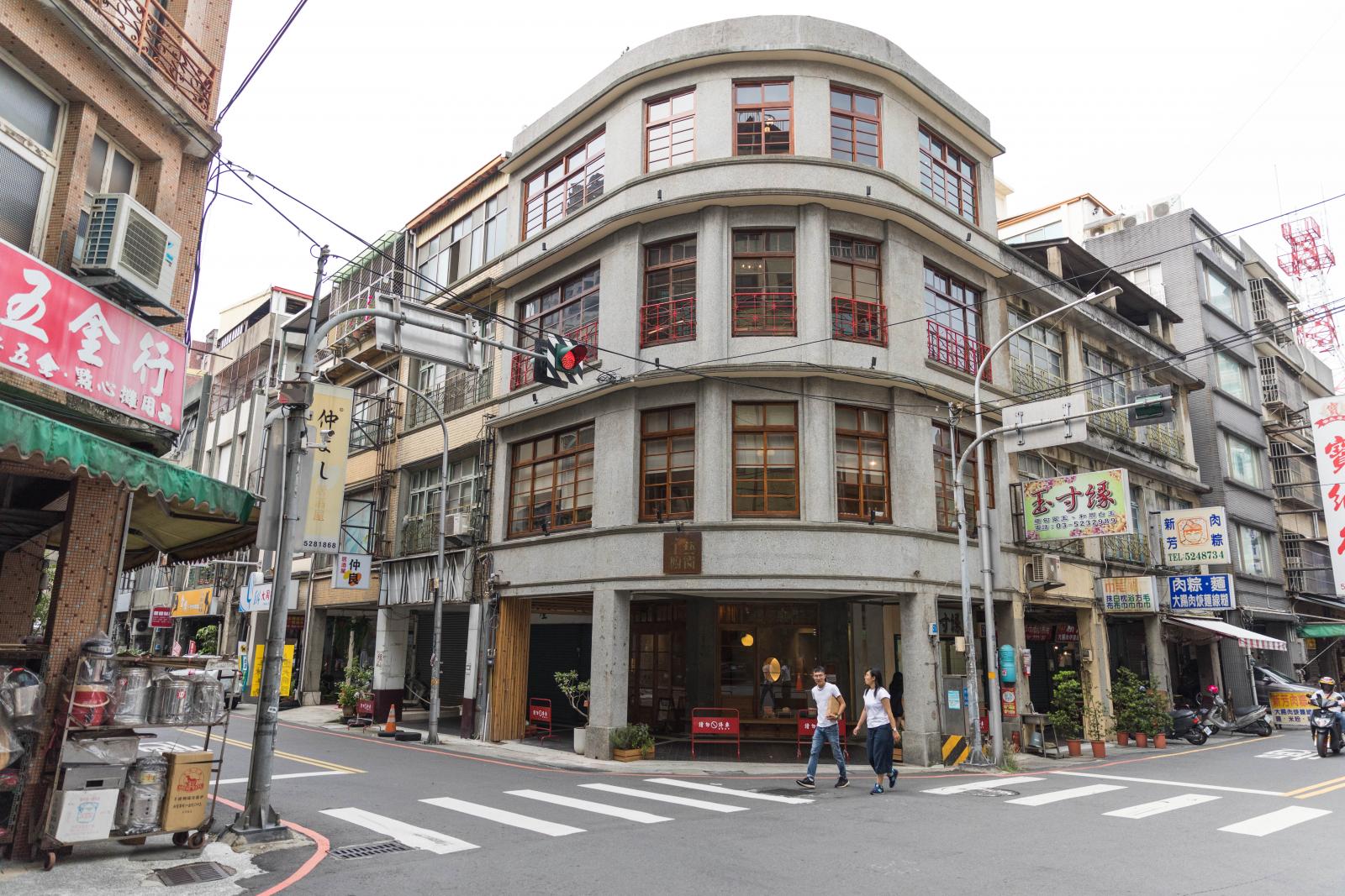 「金菊美髮廊」於民國四十五年所建,比鄰許多具生活感的老商店與傳統工藝店,是老時代中商業氣息相當濃厚的一區,同時也承載許多老新竹人的共同回憶,保留原有米色抿石子外牆再用心賦予新生命,從遠處端詳「或者工藝櫥窗」,彷若一個櫥窗般成為展示美工藝之處,削弱濃厚商業氣息的店面,展開雙手歡迎訪客的到來。