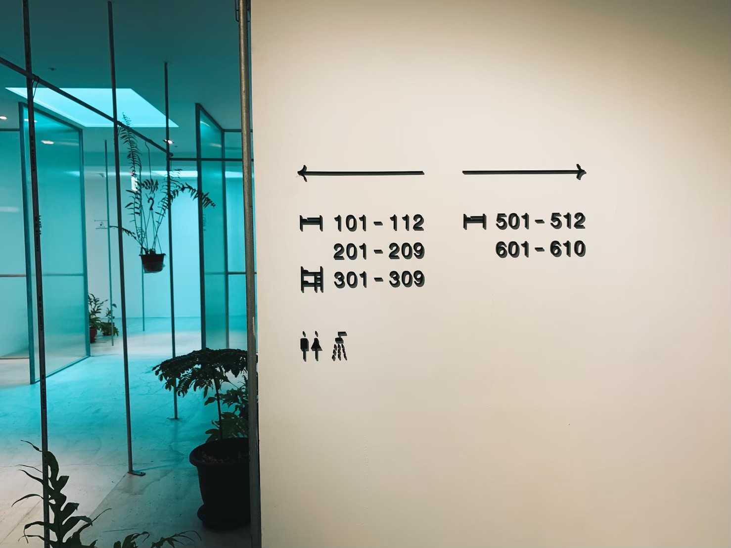 Check in之後,準備來到房間看看。卻沒想到以為自己到了花草實驗室。因為在14樓的寢居室通道及共用環境以乾淨、大片白為底,搭配綠色植物與網架區隔,創造了一個簡約卻好親近的感覺,也是星誠希望能帶給每位旅人一個家的感覺。