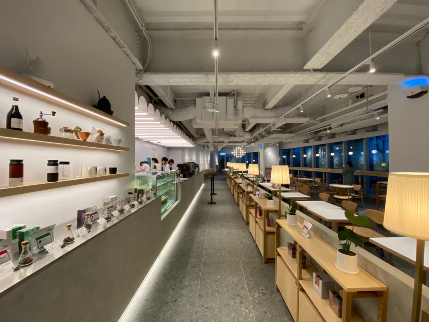 整體店內是長方形的空間,以弧形圍繞,實際大小約為150坪,共有約90個座位,寬闊舒適不擁擠。室內空間分為「戶外露臺區」、「禪風手沖咖啡區」、「沙發區」及「窗邊吧台區」等,充分發揮台中店面廣闊氣派的特色,將不同的座位需求都規劃進去,氣氛總能到位。室內以清水模為主體,為了讓客人感受到溫度,放入了大量的木質元素,讓人一進門就感受到暖色氛圍。