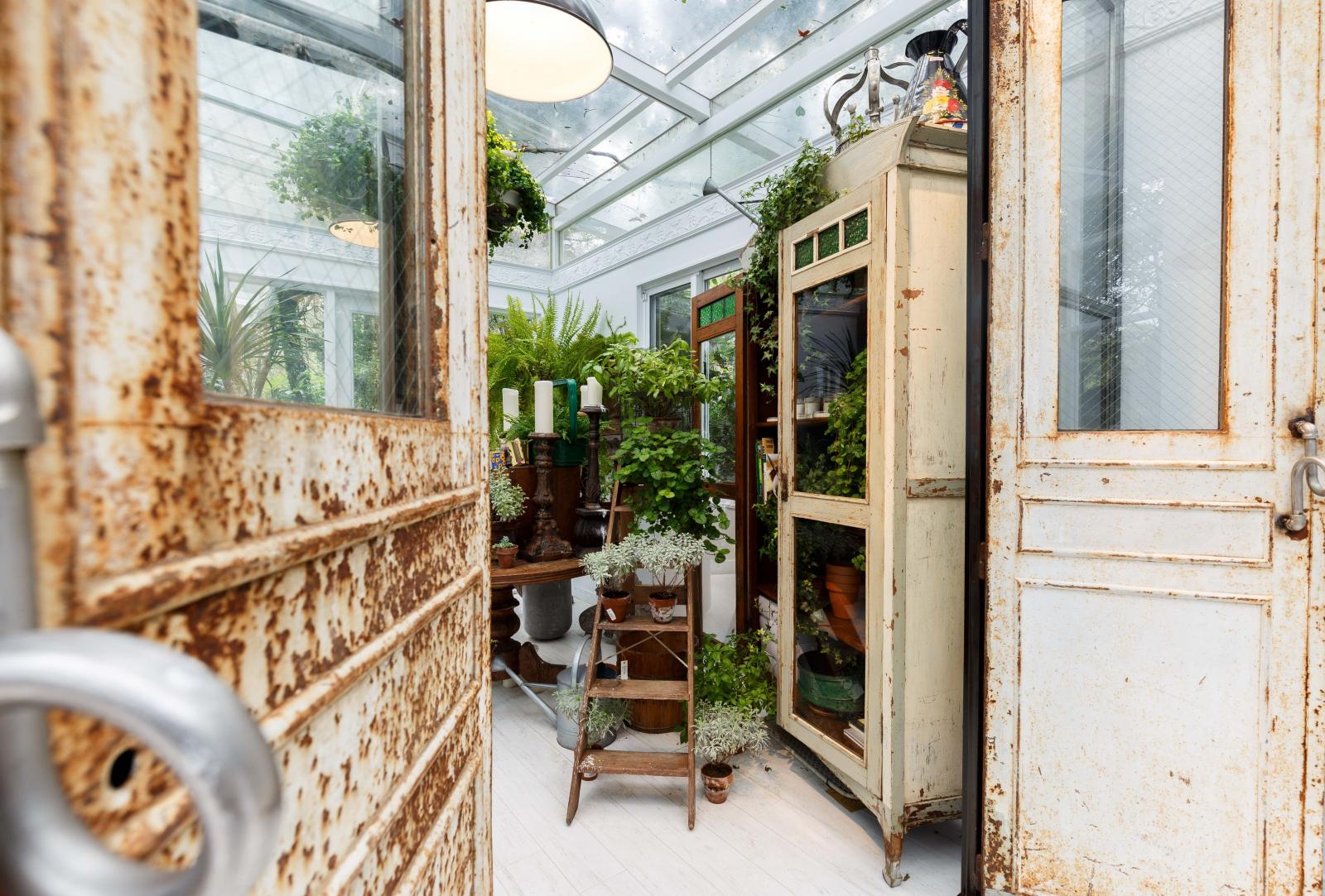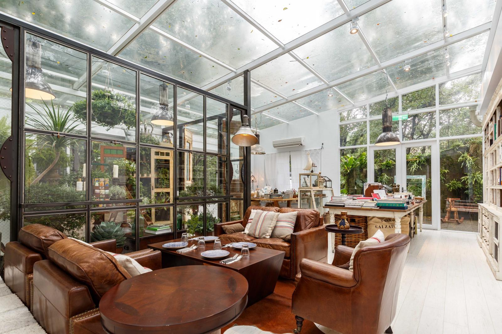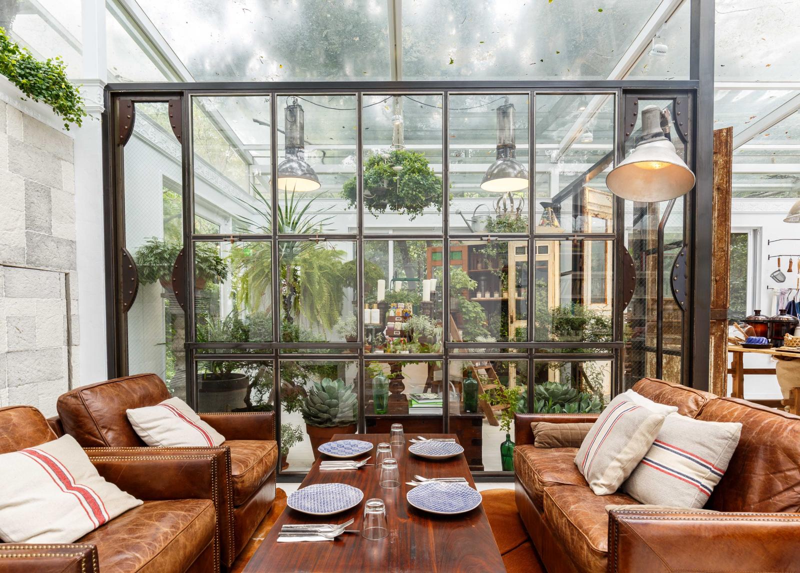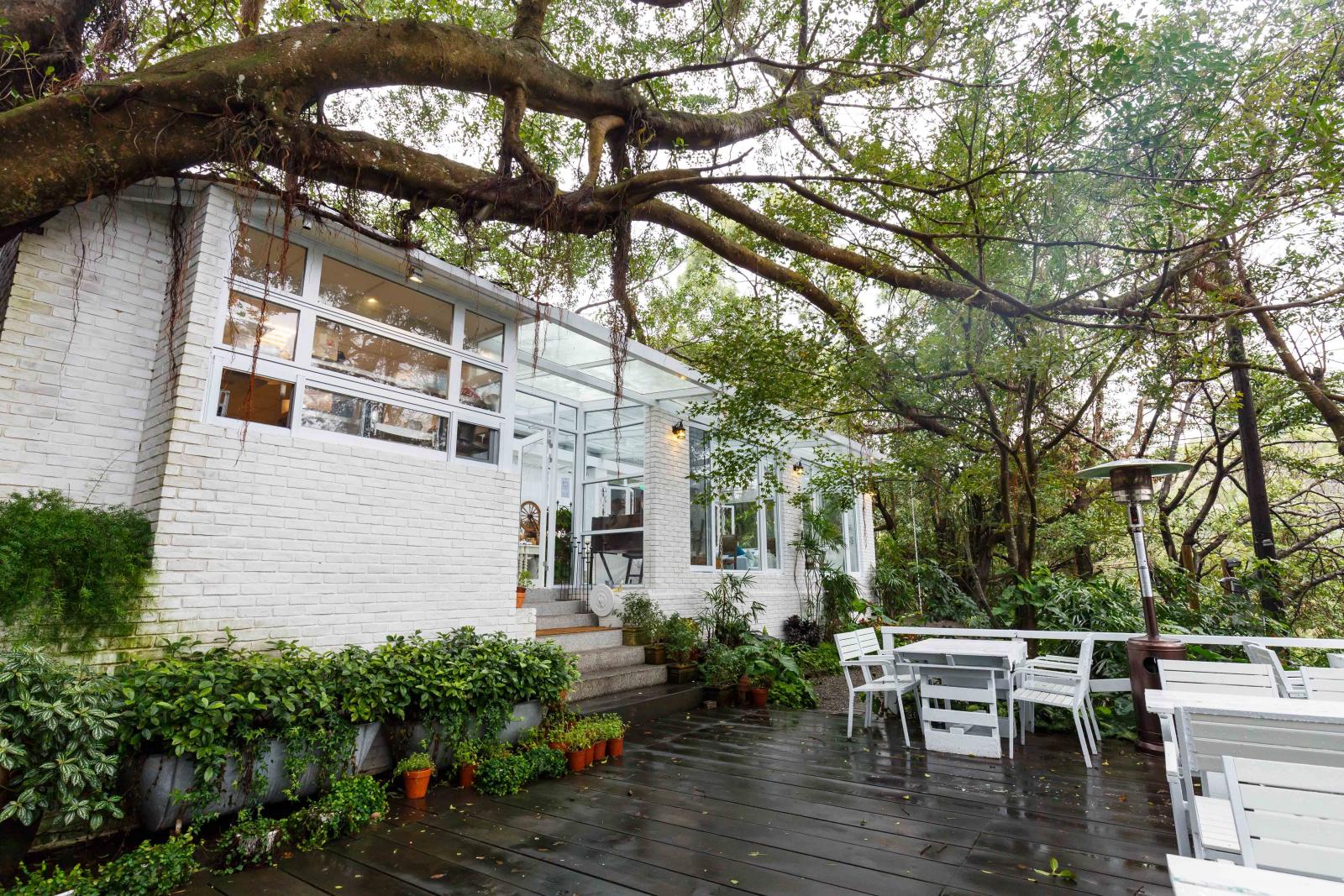 VVG好樣秘境總面積300坪,走進餐廳前,會先經過一座歐風水池,接著慢慢走上一階階的石梯,輕鬆感受大自然的美好;戶外區及餐廳外牆皆以純淨的白色系為主,融入周邊綠意環境,彷彿置身夢幻森林般,更能襯托出餐廳的清新風格。好樣秘境保留了原先餐廳的動線及格局,僅透過粉刷及老件家具來改造整體門面,並從中加入一座令顧客驚豔的「玻璃溫室花園」,要讓自然及餐廳完美融合,打造一座北市的桃花源,同時也是一處私房秘境。