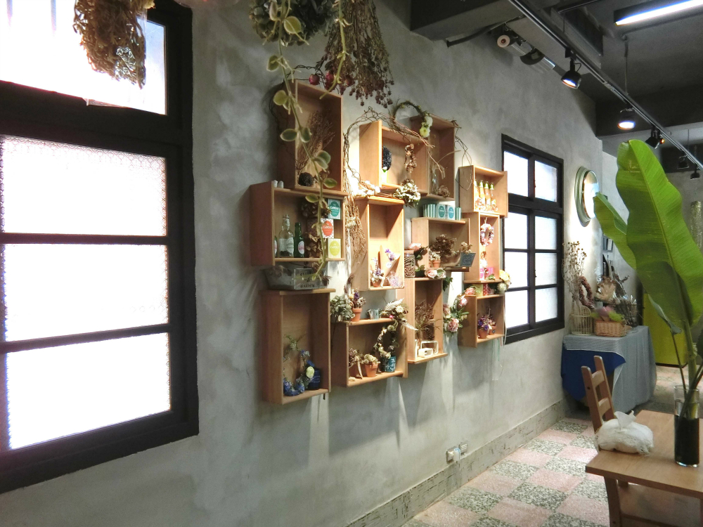 室內坪數約30坪,分為鮮花區、乾燥花區、座位區及手作體驗區,包括店鋪規劃、動線安排、裝潢風格、建材選用等都是由姊妹倆一手打造,甚至在咖啡及花草茶的選擇上,更特別挑選台北知名店家「達文西咖啡」的咖啡豆以及有機的花草茶,堅持選擇較高品質的原料,以強調自然健康的訴求。