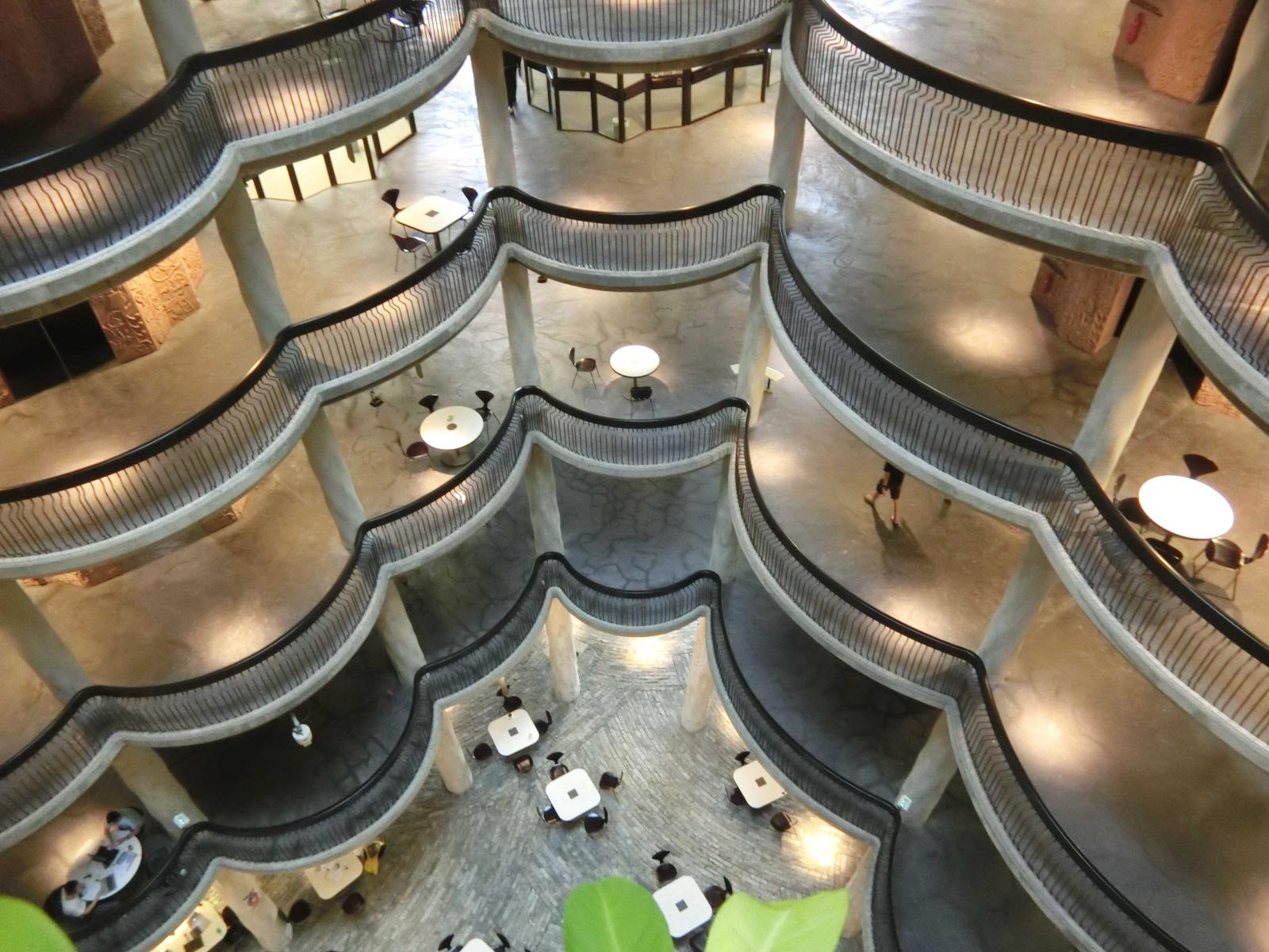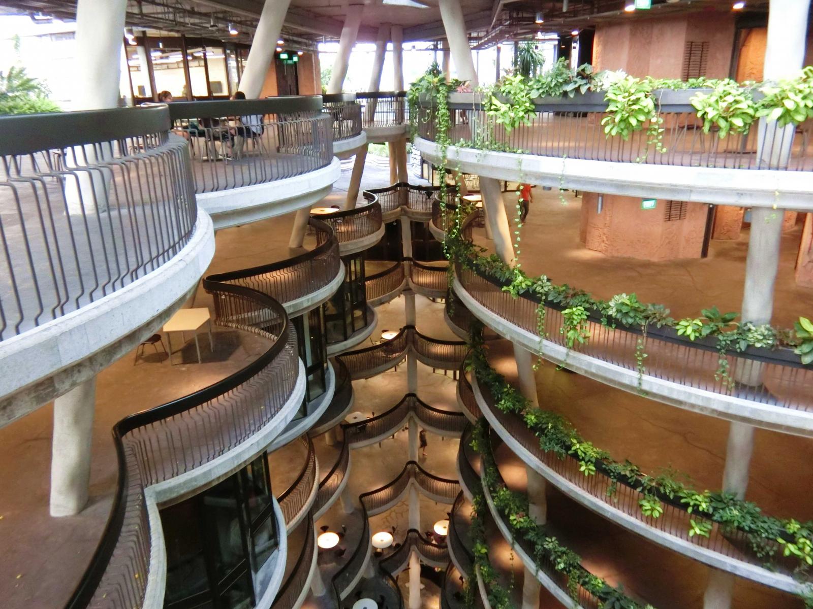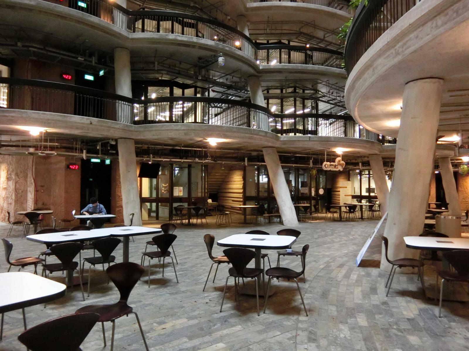 「在設計發想該案時,跳脫一般教學中心的設計方向,做全面性的創新規劃。」建築外層以1050塊手作獨特的混凝土面板整合而成,搭建出12個高聳的錐形圓塔,創造內部56間開放型教室,可容納約33000名學生,在環狀設計下呈現人群聚集的效果;中庭規劃陽台、花園及露天走廊則代表學生們相互激發靈感的場域,設計巧妙將教學中心及交流空間相互串聯,讓每個空間都能有著無阻礙的流動視線,創造出一個能夠增進學生和老師間的學習互動環境。