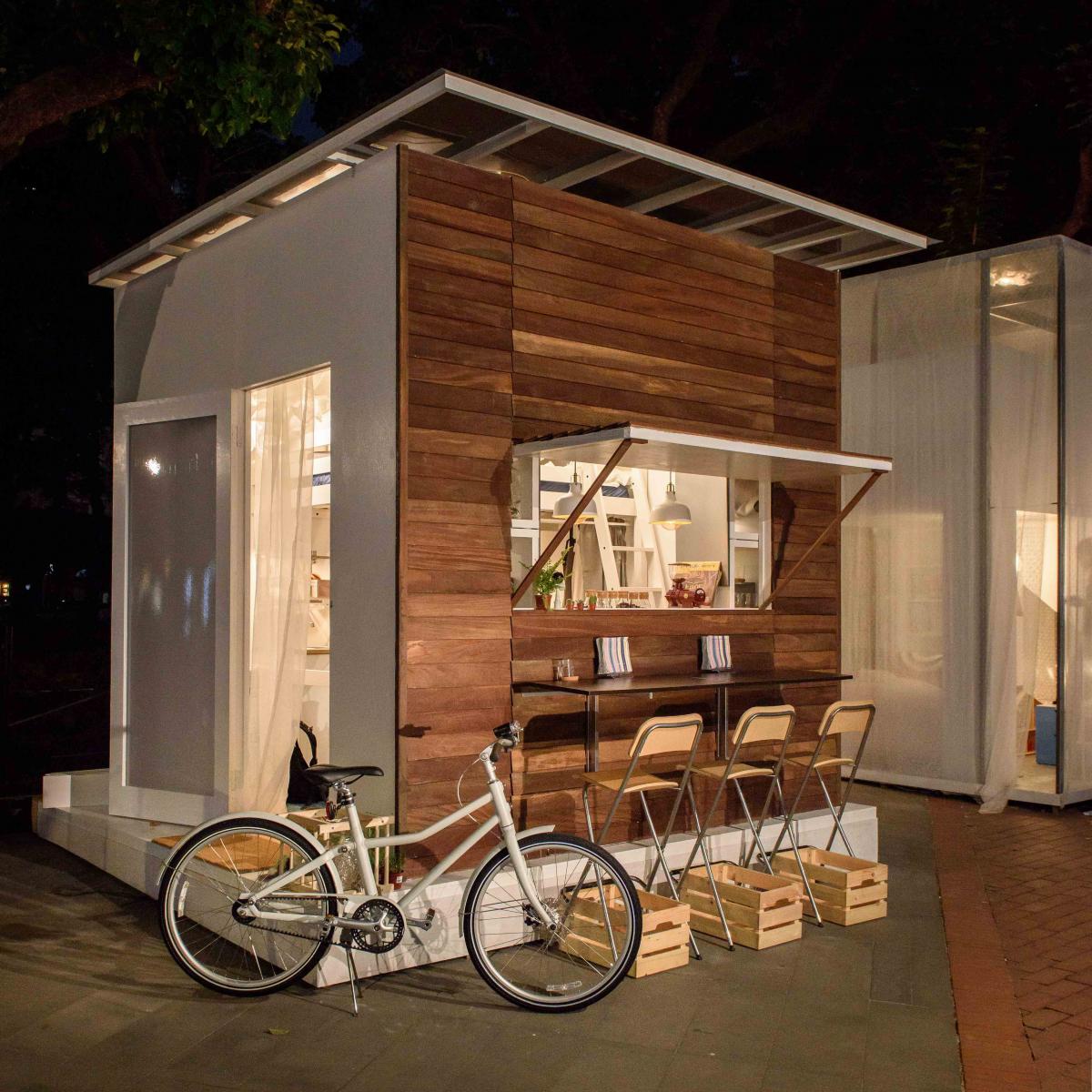 店鋪結合住宅是台灣相當常見的生活型態之一,但在越來越多人遷居到都市中生活,生活空間也越來越有限,住商空間的界線可以如何劃分,以達到麻雀雖小五臟俱全的境界呢?一位單身青年創業族擁有2.7坪大的空間,希望不只是家,還可以是咖啡廳。運用高架床將私人空間向上發展,擁有隱密性;高架床打造完整廚房,達成咖啡廳營運的基本需求,善用可移動的戶外家具,將空間延伸出去,成為咖啡廳的一部分,將有效空間做最大利用,這個微型創業的空間,讓生活與創業充滿更多樂趣。