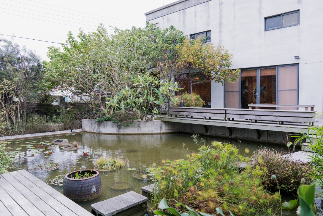 這家店,沒有醒目招牌,低調的入門處,以為是私宅,其實別有洞天,打開大門緩步入內,先是被綠意包圍,接著看到造景水池,在這,少了城市的車流喧囂,很靜謐也很別緻,彷彿走進另一個秘密花園,美好旅程就此展開。