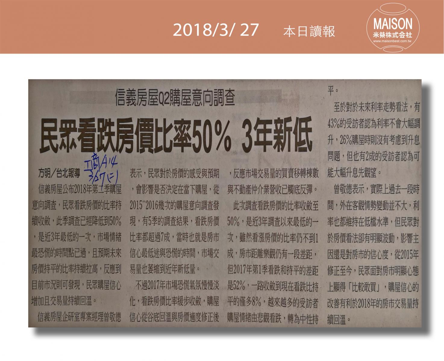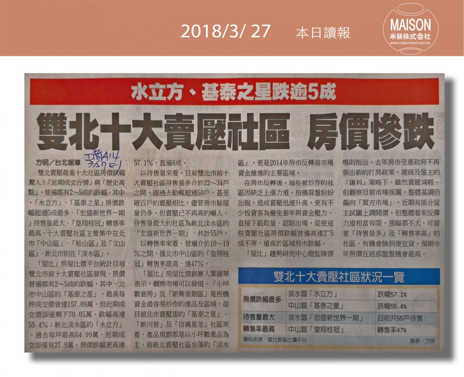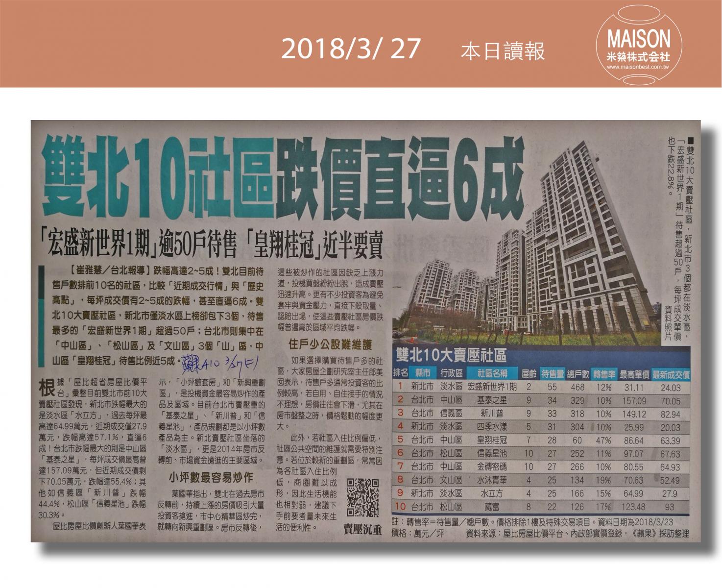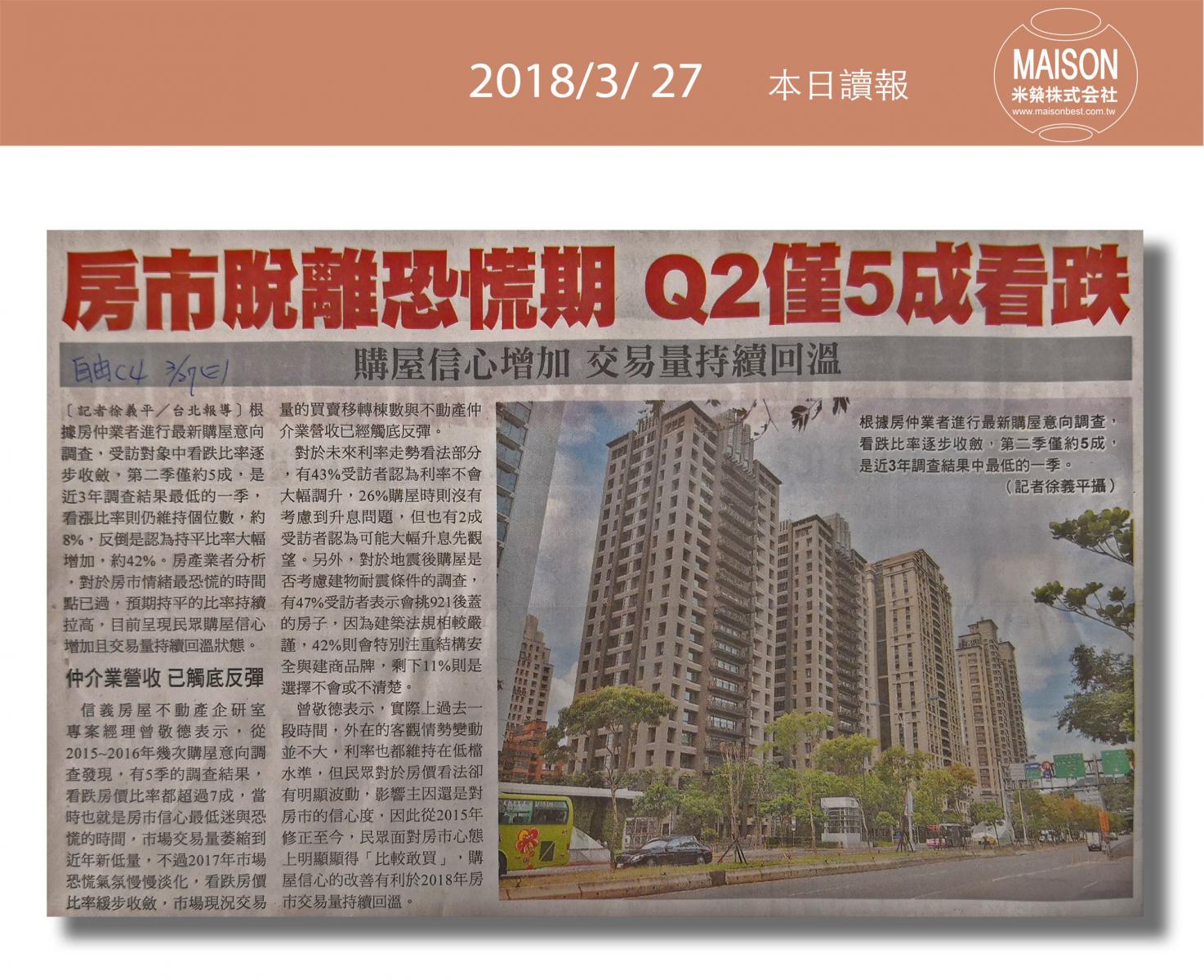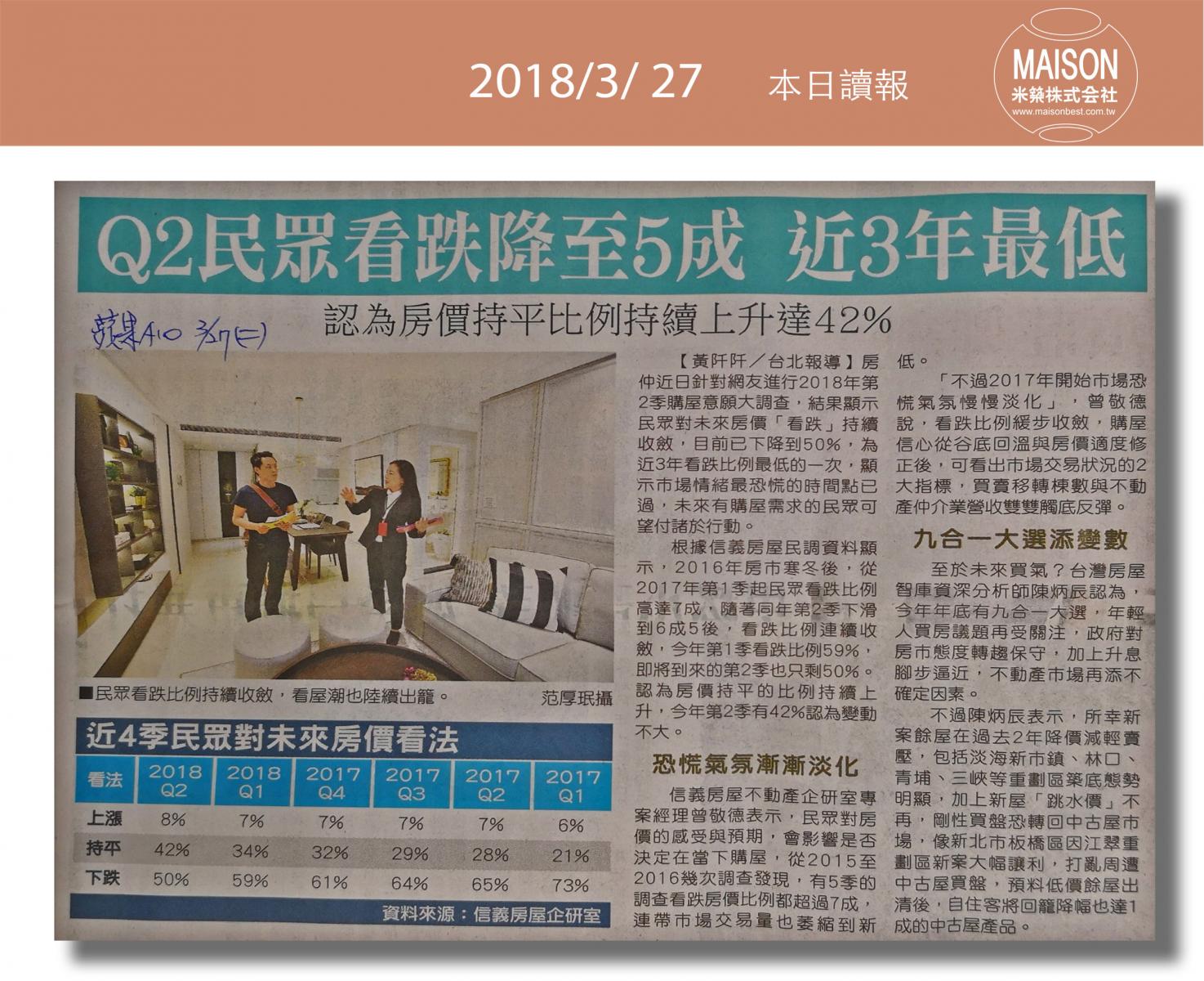 今日新聞重點:Q2民眾看跌降至5成 近3年最低:雙北十大賣壓社區 房價慘跌:全台最貴菜園 又要賣了:睽違24年 竹市青草湖公辦市地重劃動土:房市脫離恐慌期 Q2僅5成看跌!