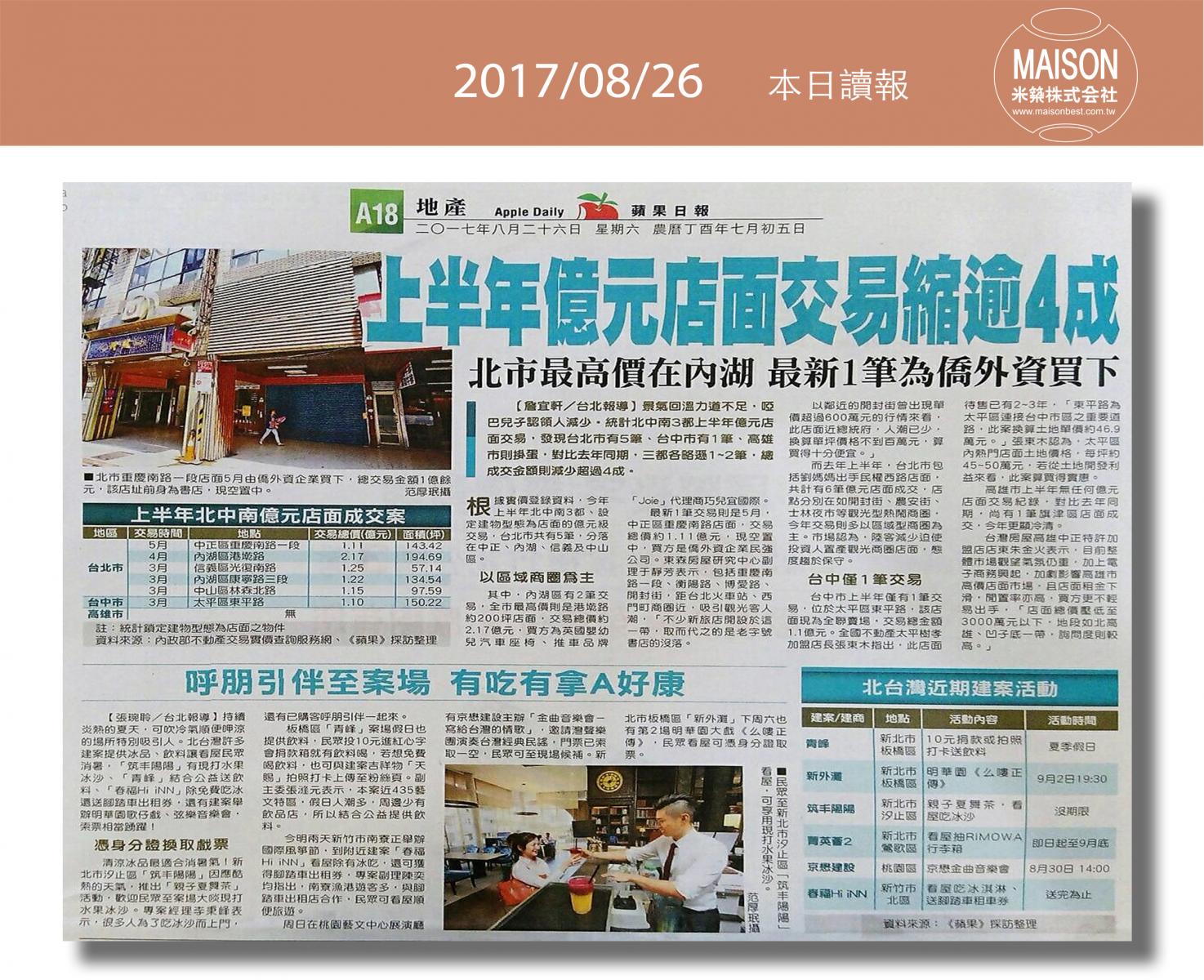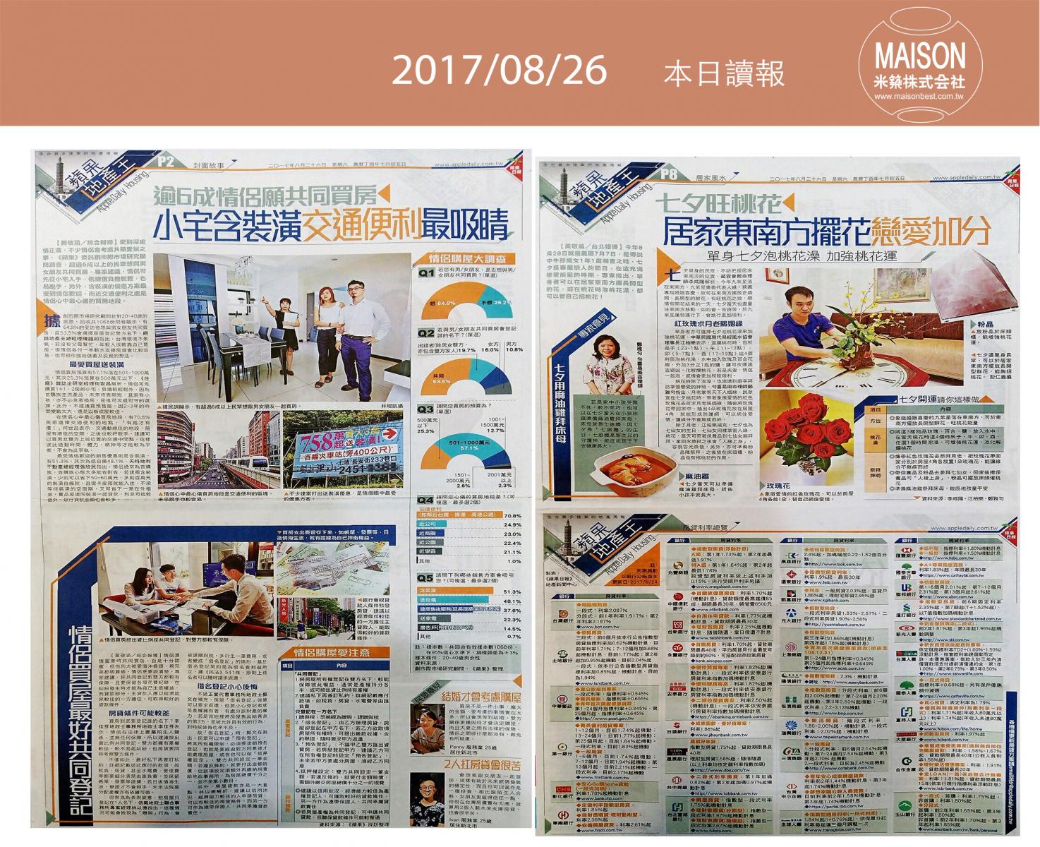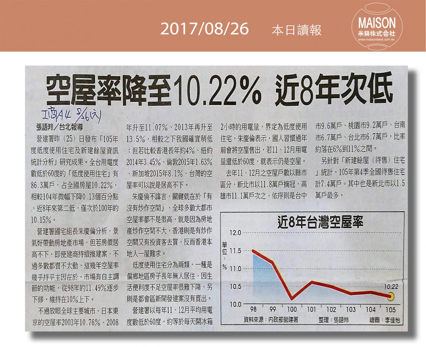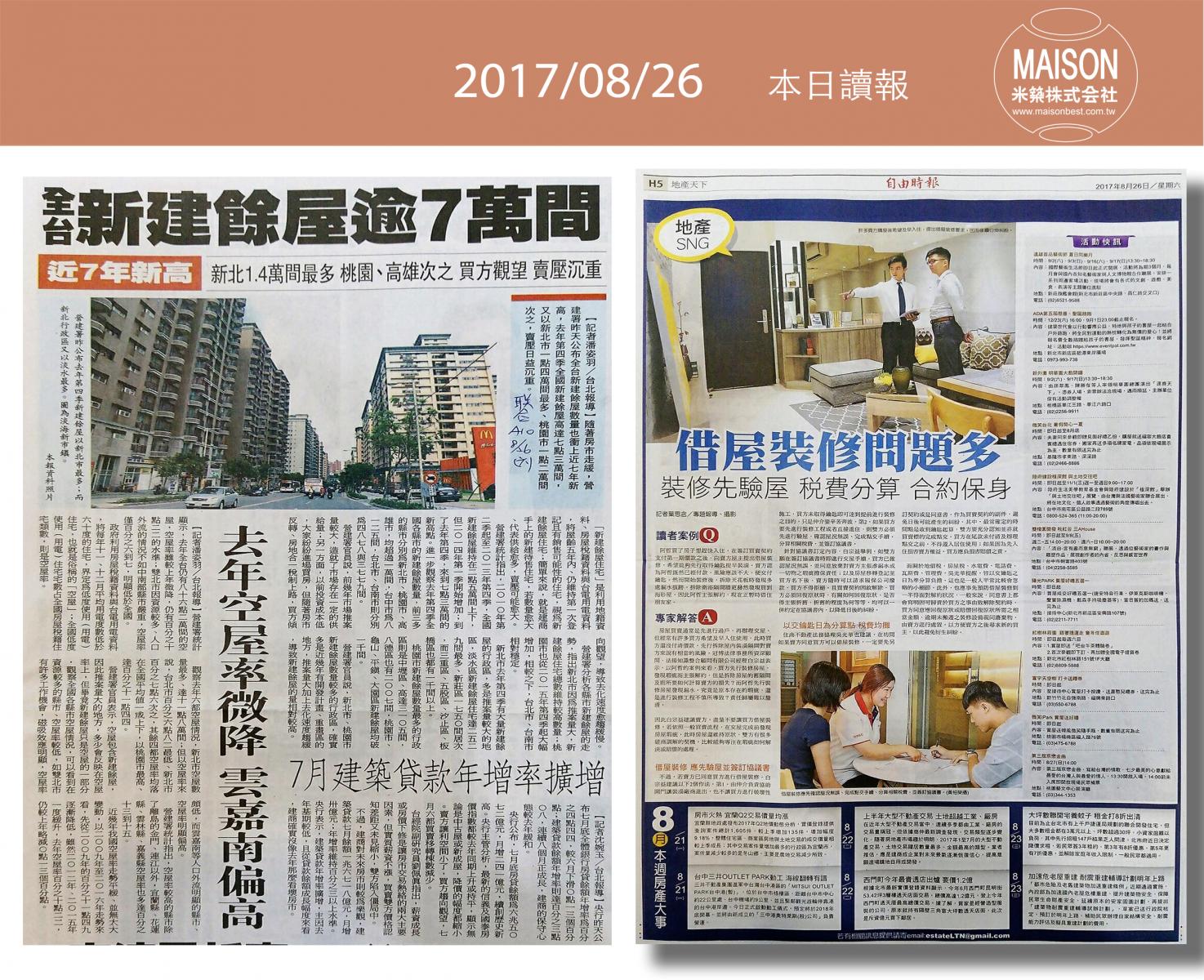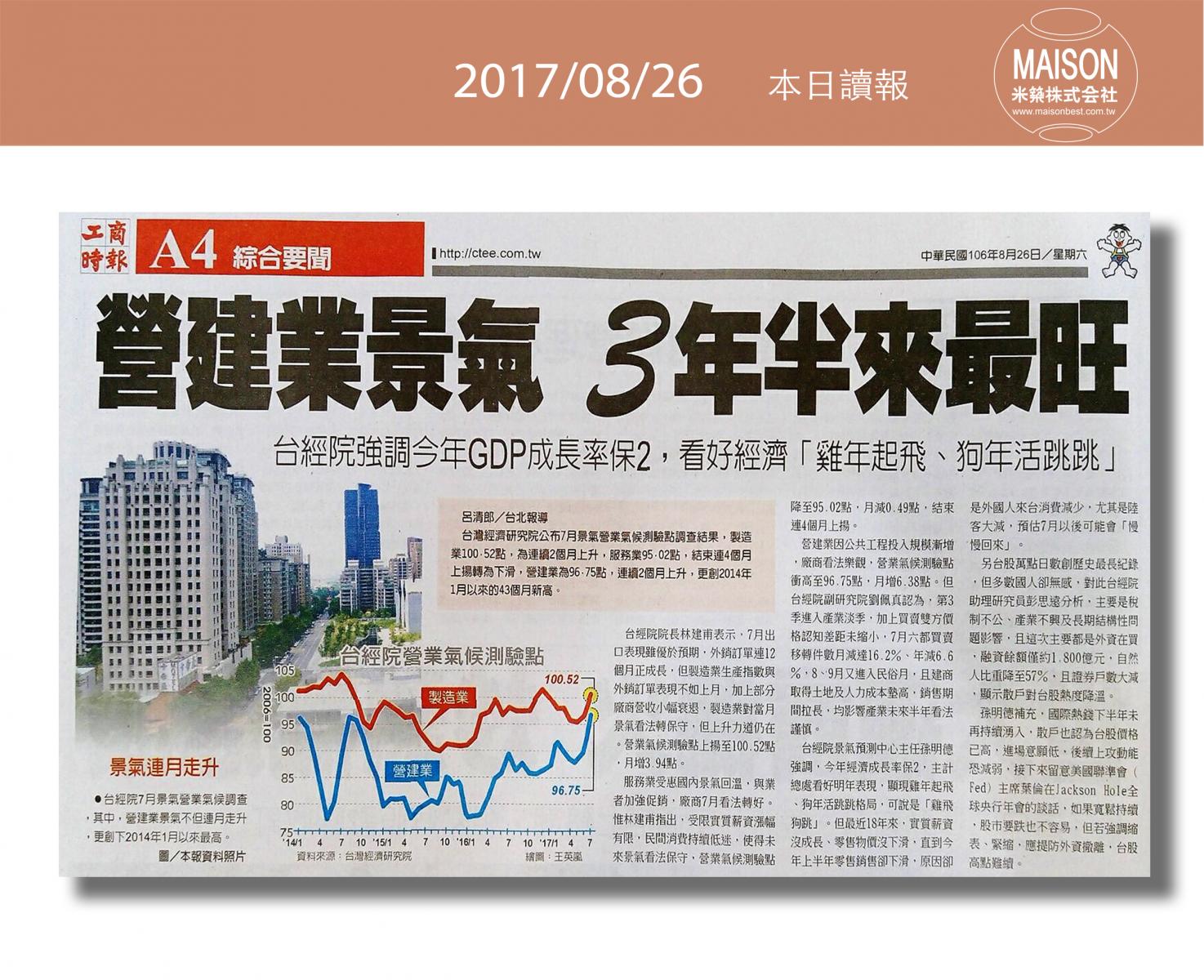 今日讀報(8/26)!1分鐘掌握財經房態今日新聞重點:新竹火車站 古典美學再升級:購屋及建築貸款上月年增率走低:新建餘屋攀高 房市賣壓重:營建業景氣 3年半來最旺:借屋裝修問題多:逾6成情侶願共同買房 小宅含裝潢交通便利最吸睛:七夕旺桃花居家東南方擺花戀愛加分……